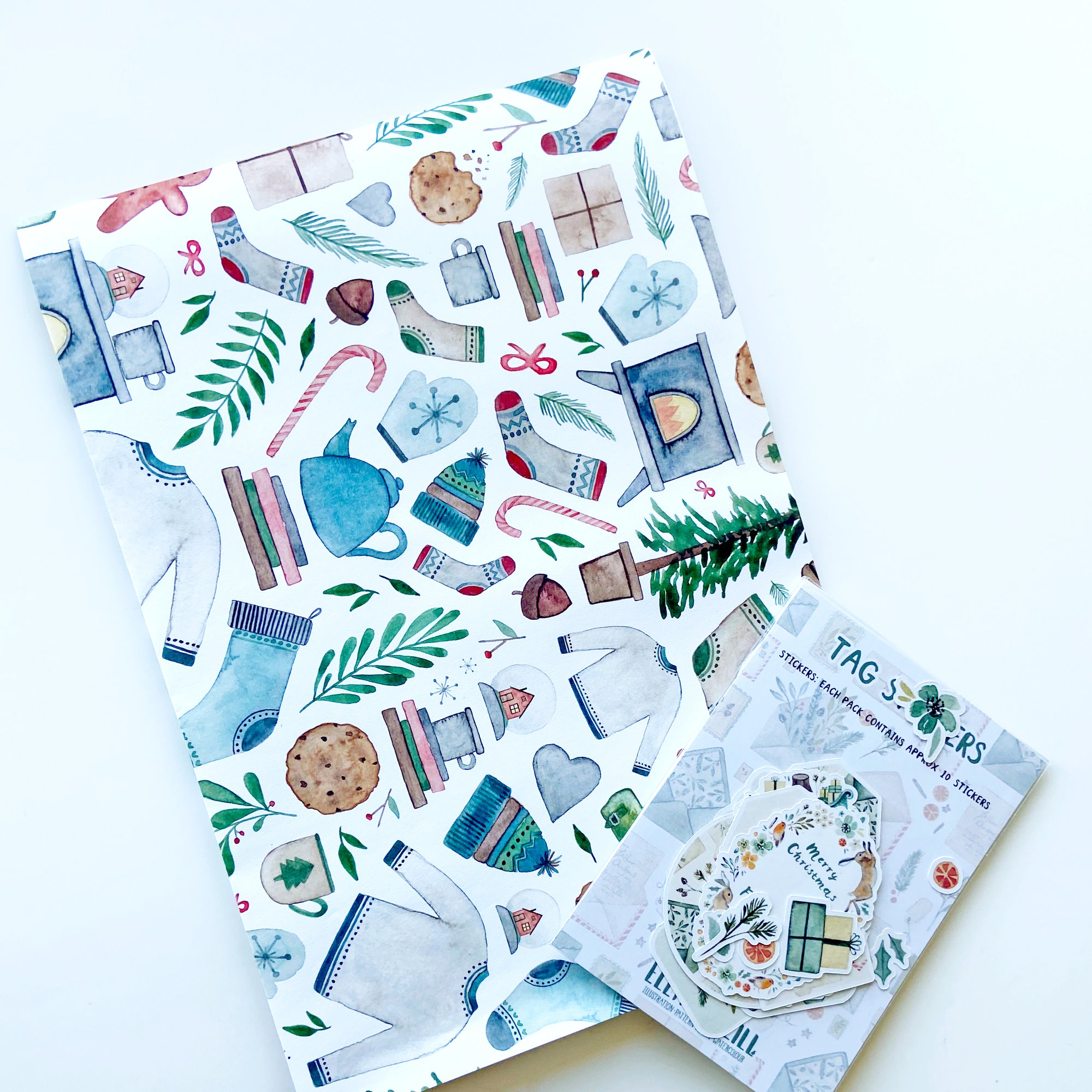 Wrap your Christmas gifts with style with this cozy Christmas wrapping paper and sticker set bundle