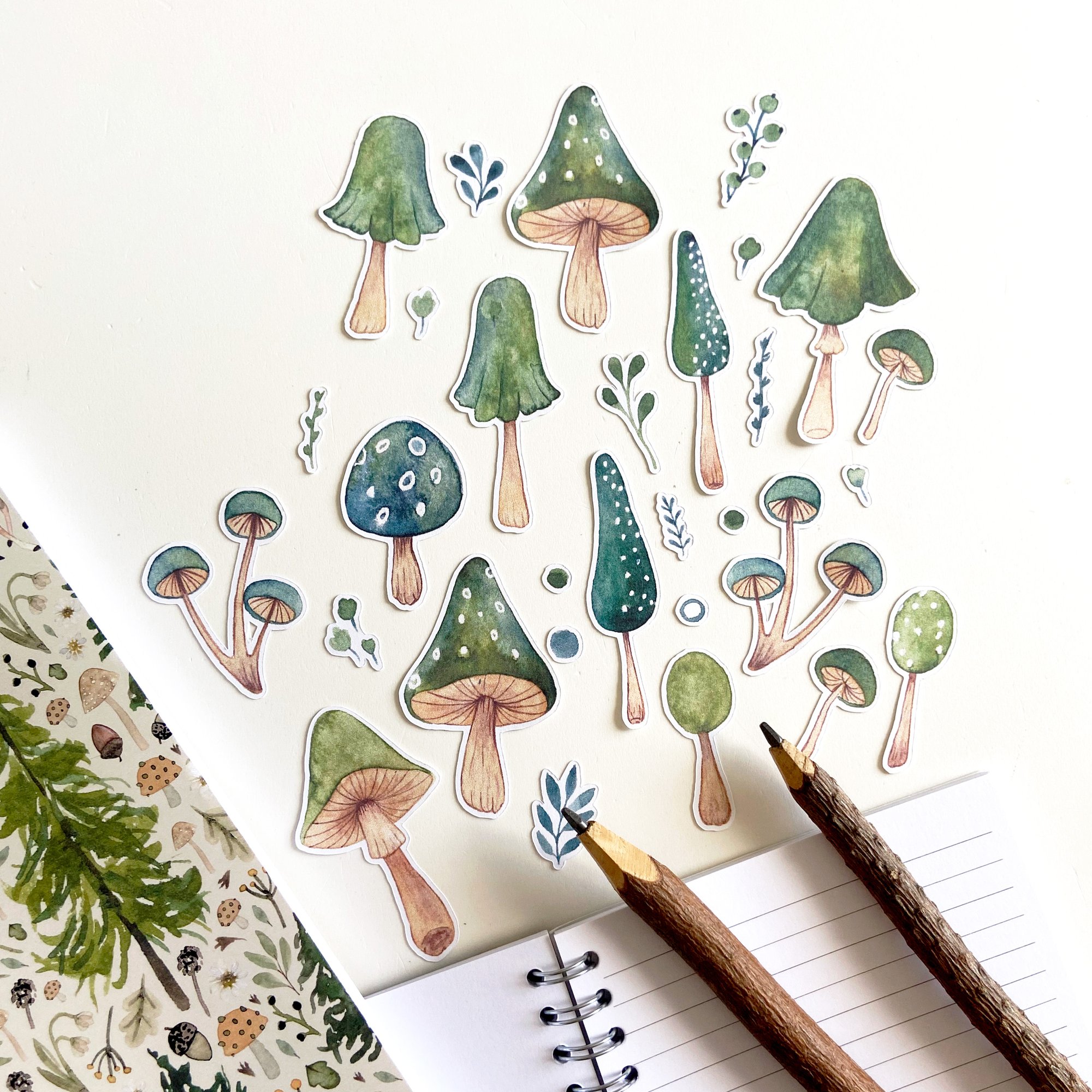 green mushrooms sticker bundle (29 stickers)