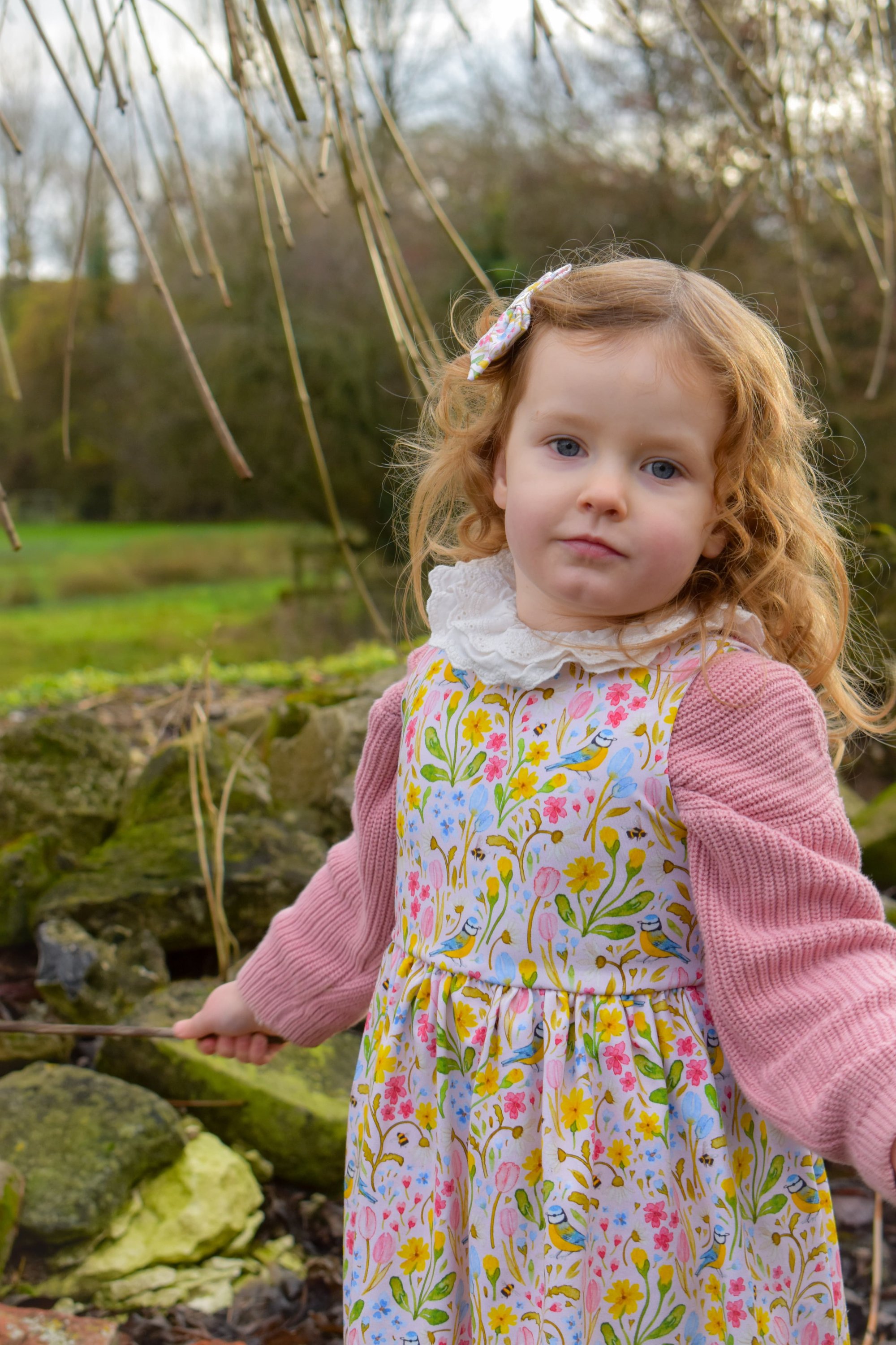 Pink floral blue tit - PRE-ORDER - BABY/CHILDRENS CLOTHING.